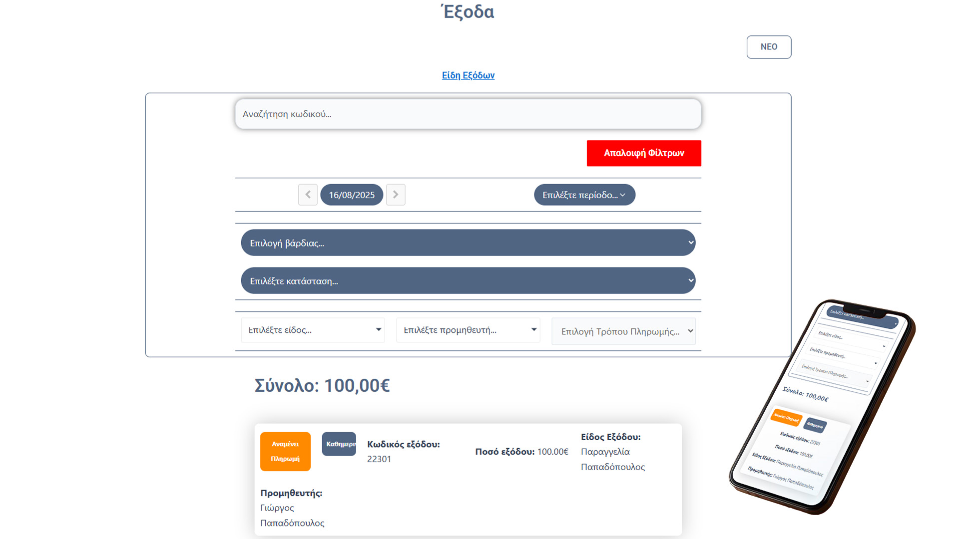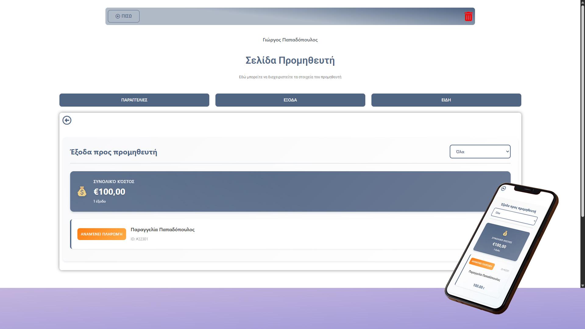 Προβολή εξόδων του συγκεκριμένου προμηθευτή