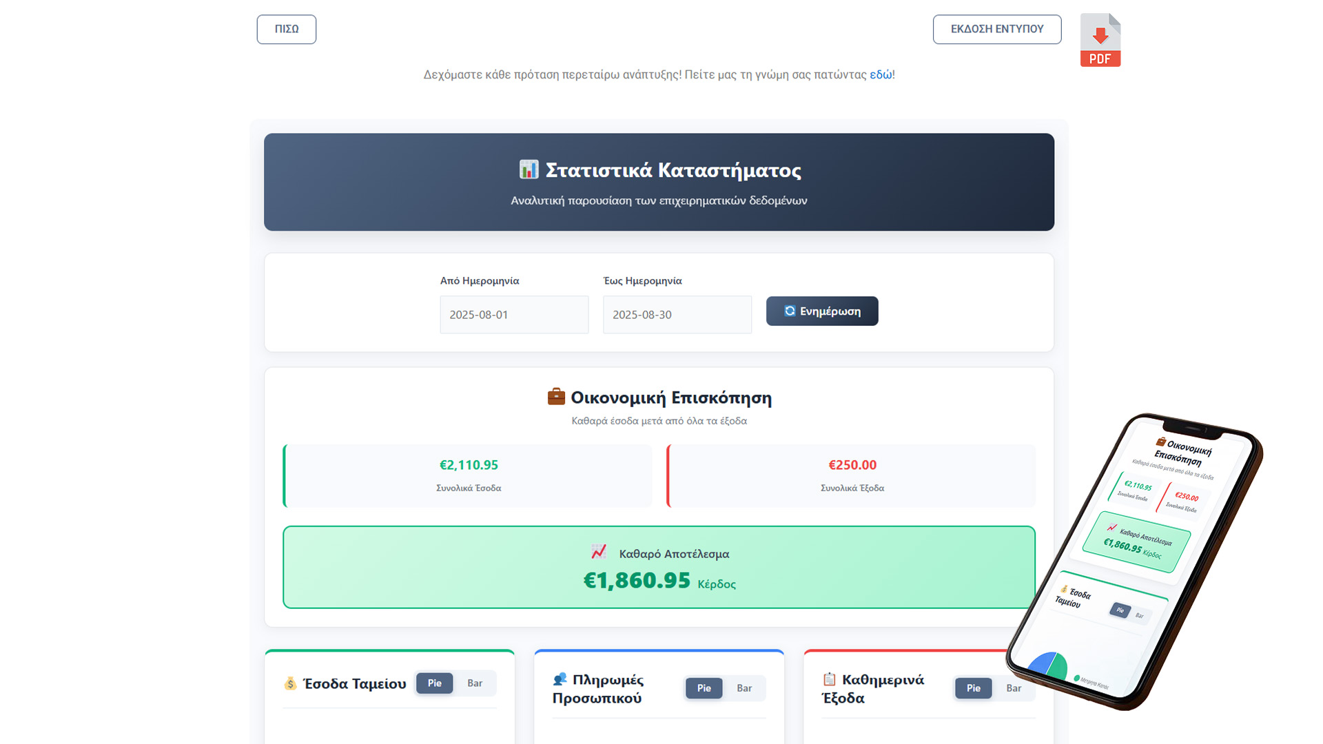 *Προσεχώς αναβάθμιση στατιστικών για σύγκριση τζίρου με προηγούμενες ημερομηνίες*