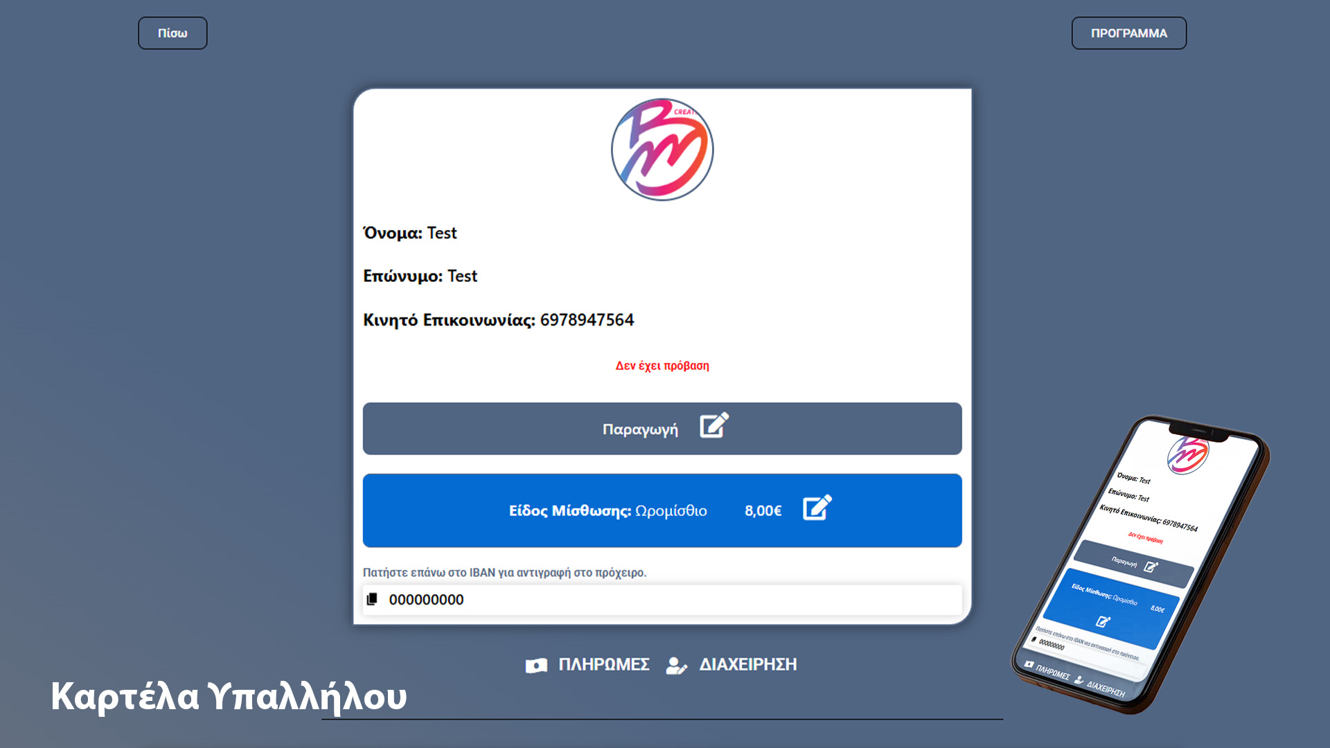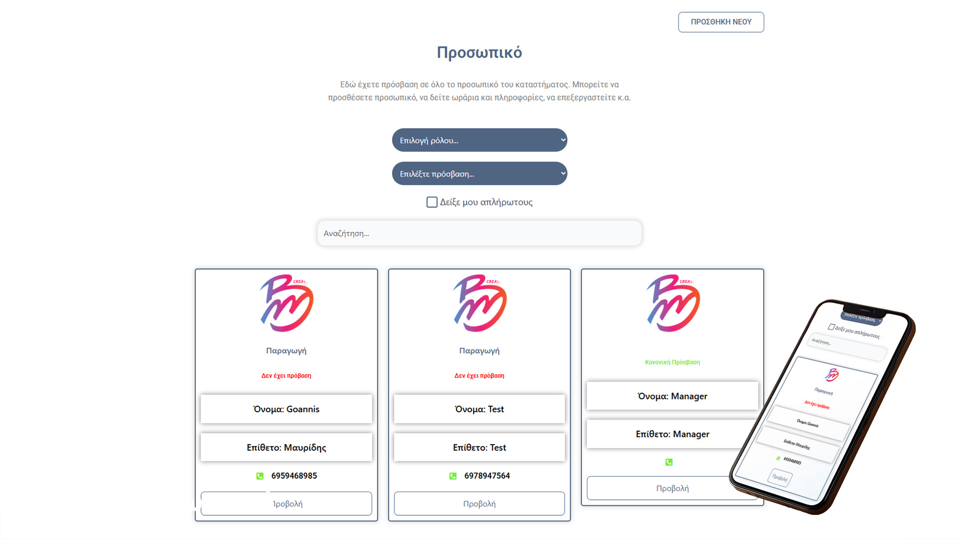 Καρτέλα προσωπικού για εύκολη διαχείριση.