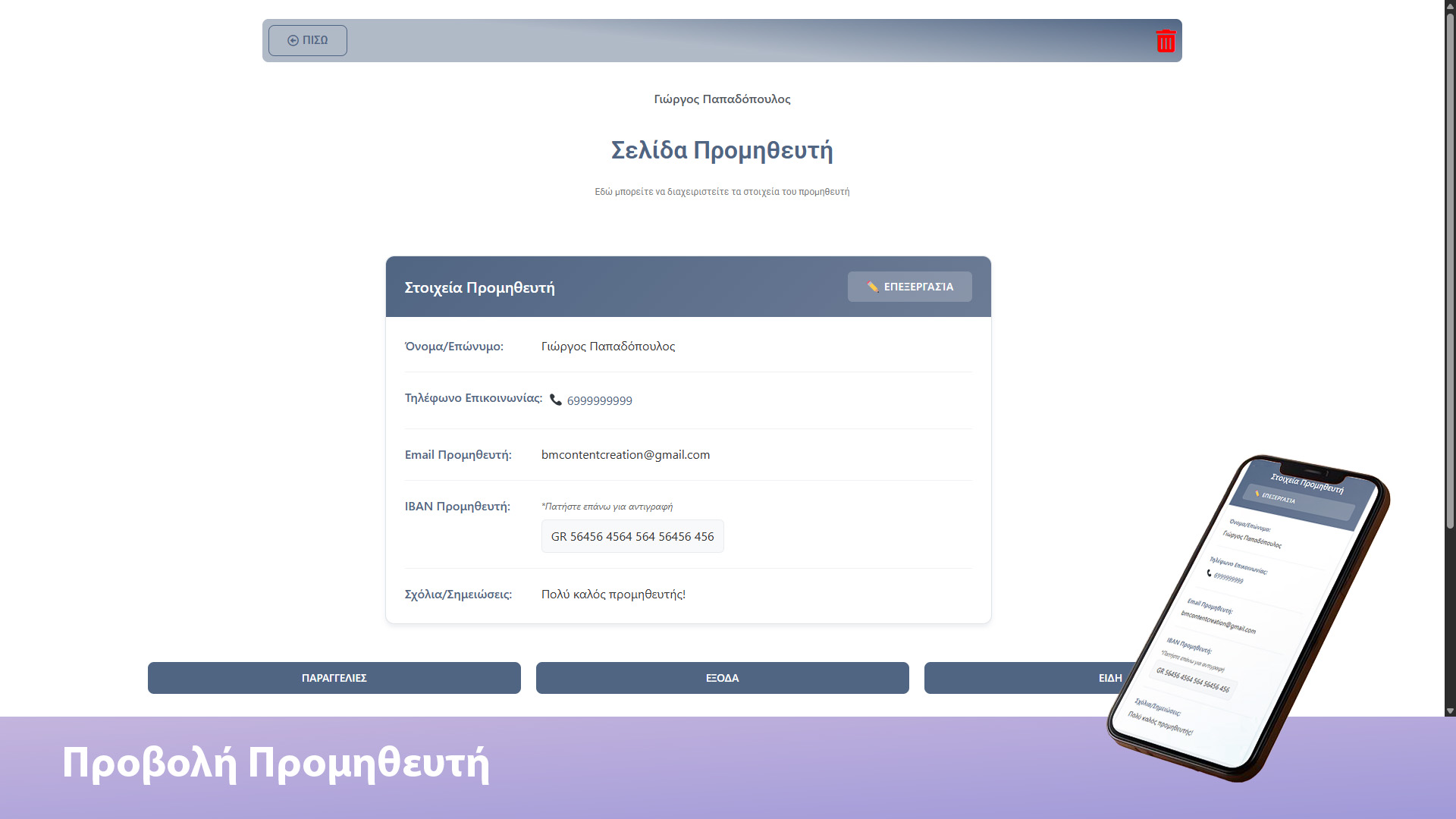 Επεξεργασία προμηθευτή