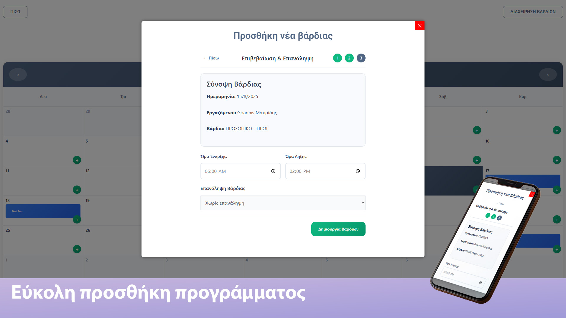 Εύκολη προσθήκη και διαχείριση προγράμματος για όλους τους υπαλλήλους. Πότε δουλεύουν εύκολα και γρήγορα!